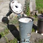 El aspecto más impactante, no obstante, fueron las demostraciones prácticas. Estas demostraciones congregaban permanentemente a gran número de curiosos. El horno-remolque del polaco Mateusz Grobelny fue muy aplaudido. Se trata de un horno de más de un metro cúbico de capacidad, montado sobre un remolque de coche, con una chimenea basculante y desmontable, que en unos minutos está listo para funcionar (Véase foto 7, pág. 20). No menos interesante fue la utilización de serrín como combustible, de la mano de Lowell Baker (Estados Unidos) y Reinhart Löber (Alemania) que construyeron un sorprendente quemador de serrín utilizando materiales de desecho (véase foto 2, pág. 20). Los asistentes sonreían viendo como aquel conjunto de botes, contenedores, una aspiradora vieja, una olla a presión, tubos de diferentes secciones, todo ello manejado con interruptores y controladores de potencia que parecían sacados del laboratorio de un “profesor chiflado” conseguían al final introducir en el pequeño horno una potencia de fuego que hacía que salieran chispas por cualquier rendija del horno, que subiera de temperatura de forma meteórica y que al final, claro, fundiera parte de las cerámicas… No obstante, nos aseguraron que se podía controlar perfectamente; ¡pero ese día no tocaba controlarse!