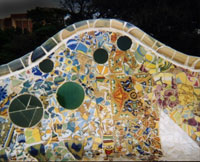 Existe un relato de cómo hizo Gaudí para conseguir que sus operarios realizasen este maravilloso revestimiento cerámico, y creo que este es el ejemplo de la sabiduría que tenía Gaudí para dirigir sus obras, es el conocimiento profundo del director de orquesta que posee el control sobre cada instrumento, su técnica y, sobre todo, sobre la psicología de cada uno de sus músicos. Gaudí, junto a Jujol, su colaborador en temas artísticos, colorísticos y sobre todo en temas de cerámica, pedían a sus albañiles que separasen los trozos de cerámica rota que se acumulaban en capazos a pie de la obra. Estas cerámicas fueron compradas y algunas piezas regaladas por los talleres de Pujol y Bausis, de Esplugas de Llobregat, o Sebastian Ribo, de la calle Dos de Mayo de Barcelona, llevadas en carro hasta el Park Güell y colocadas en capazos después de troceadas Había que pegarlas sobre la estructura prefabricada de ladrillo, para lo que se necesitaba una sensibilidad muy especial, se requería oficio pero también mucho arte a la hora de seleccionar y combinar los colores y dibujos de las cerámicas y lograr unas composiciones plásticas coherentes, lo que no quiere decir que cada operario tuviese el mismo estilo ni las mismas necesidades estéticas; al contrario, esto era lo interesante, cada uno de ellos tenía su personalidad y su gusto. Gaudí o Jujol realizaban la siguiente prueba entre los operarios. Por las fotografías de la época sabemos que disponían de mucho personal para estos trabajos. Les pedían que separasen las cerámicas por colores y tonos, cada uno de ellos, con su capazo de cerámicas rotas y mezcladas, tenía que jugar a los “colorines”, e ir separando color por color y tono por tono en otras bateas predispuestas, en eso consistía el juego. A partir de este trabajo, después de ver quien había tenido más sensibilidad visual, o sea, cual de esos trabajadores había descubierto y observado mas variedad de colores, tonos, y detalles cromáticos y de composición, la selección del personal ya estaba hecha. Los más sensibles a este tema se ocuparían de este trabajo casi artístico, y los que no habían visto tanto detalle o se le habían mezclado los colores o no habían observado todas las variedades de un solo color, se dedicarían a otros trabajos menos artísticos, el acarreo de piedras y tierras, la ubicación de piedras en los viaductos, la colocación de prefabricados o el llenado de los moldes, trabajo no faltaba en la realización de esta ciudadela.