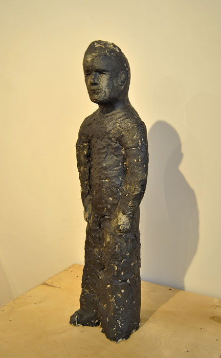 Sólo queda hablar del montaje, ciertamente inusual. La sala es simplemente una gran habitación rectangular con ventanas a la calle, y se ha optado por mostrar todas las piezas posibles, esto se ha conseguido instalando en medio de la sala las mismas cajas de embalaje que suponemos contenían las piezas y encima de ellas las esculturas. El problema es que las piezas colocadas más altas no se aprecian bien y las que están “contra la pared” no cuentan con suficiente espacio para se apreciadas correctamente. No obstante, en su conjunto el montaje es atractivo, casi parece (y quizá así sea) una “instalación”, en la que lo importante es el conjunto y no los componentes por separado.