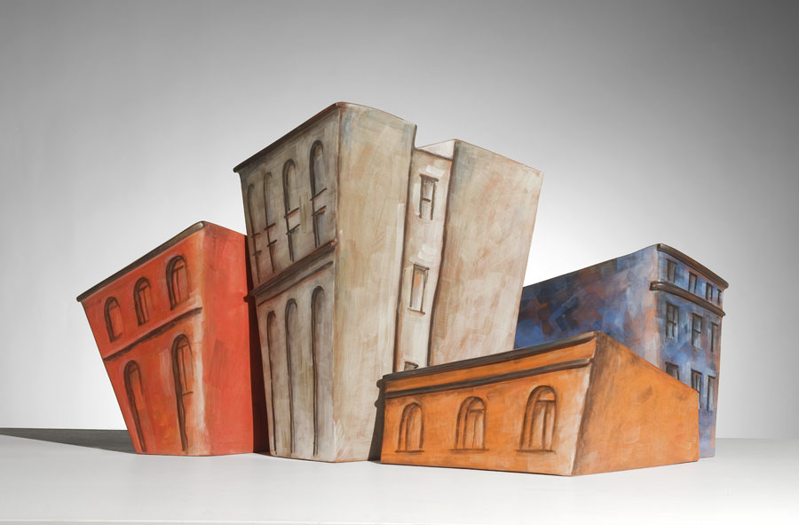 Walsh me organizó una visita para conocer a Buzio en su estudio ese mismo día. Llegué, me presenté y le conté que Mark Del Vecchio, mi pareja y socio, y yo, acabábamos de abrir una galería de arte en cerámica en Los Ángeles, le ofrecí ser su representante y organizar una exposición individual. Fue evidente que no me tomó en serio; fue muy educada, pero sus ojos telegrafiaban algo entre el escepticismo y la incredulidad. Afortunadamente Walsh podía responder por nosotros y la primera de muchas exposiciones tuvo lugar en enero de 1983, con el título de “Lidya Buzio: Soho Roofscapes”.