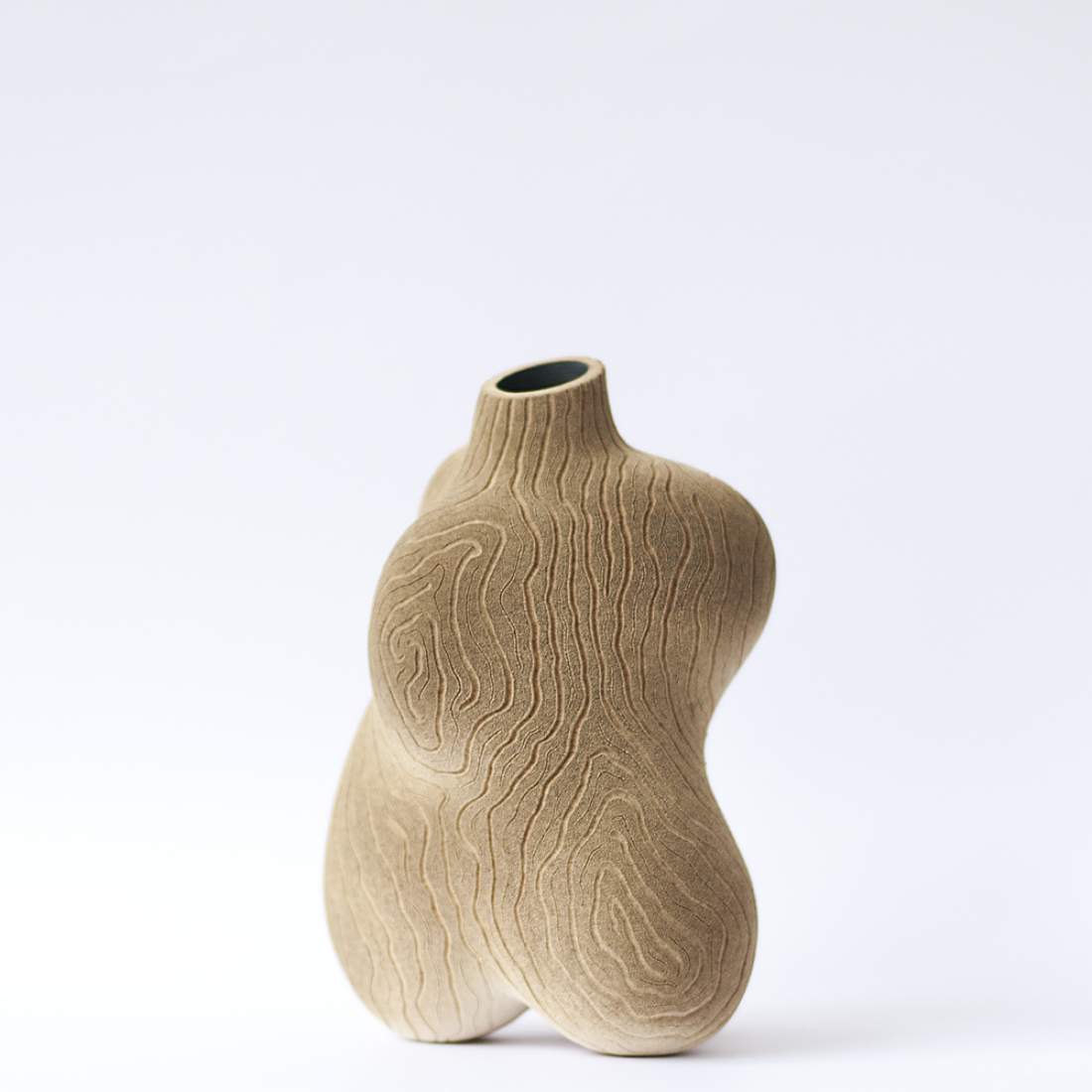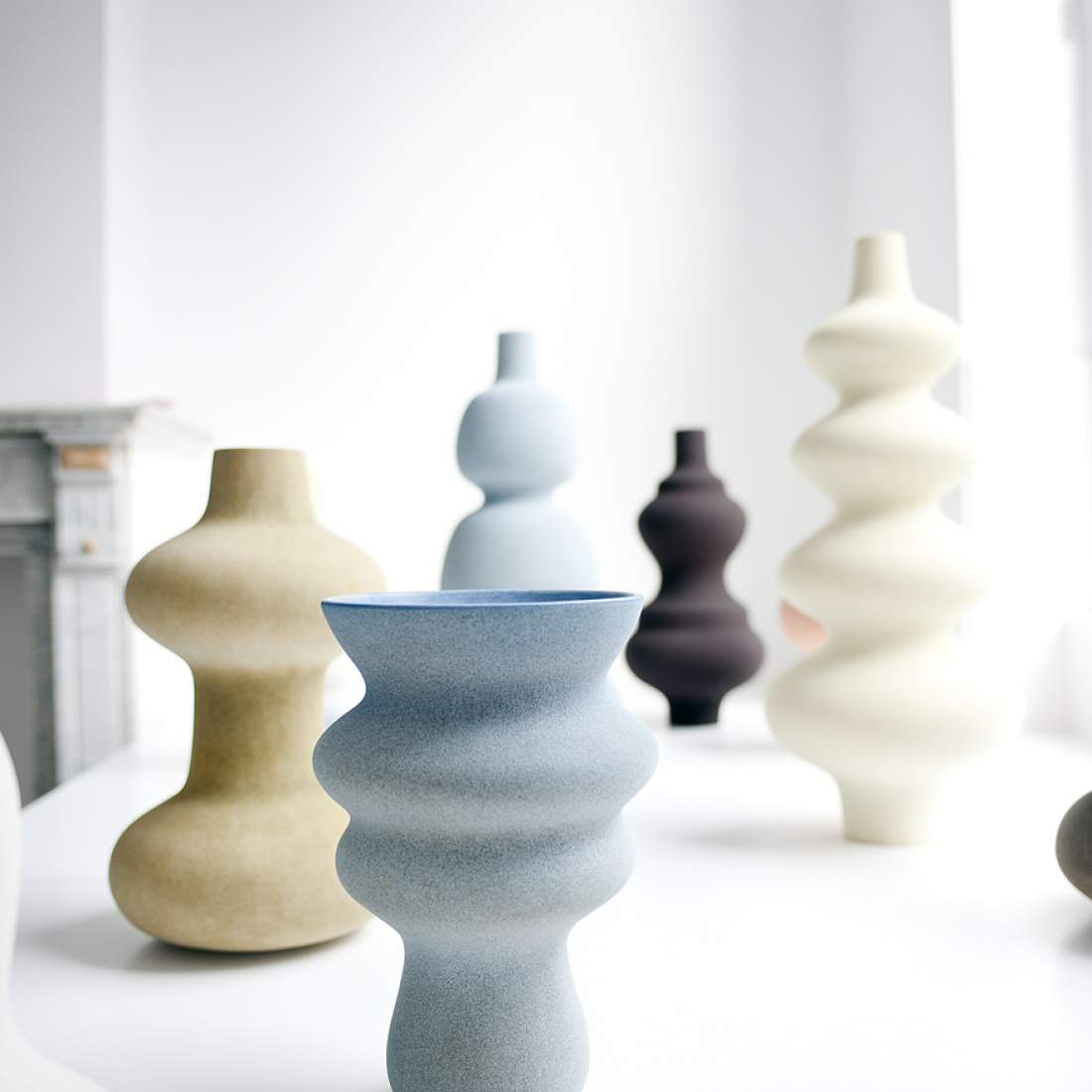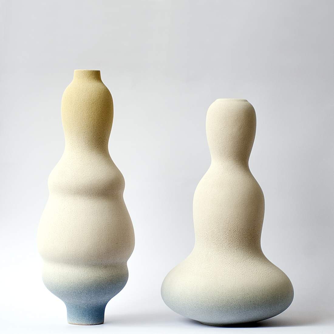 La otra línea de investigación de la artista danesa que nos ocupa es un paso más en la utilización de este “concepto contenedor” (“vessel”, como dicen en Estados Unidos), y es la liberación de las formas del torno, aunque manteniendo la esencia del hueco interior, del crecimiento vertical y de las apertura que den sentido (que no utilidad) a ese espacio interno de las esculturas. Estas piezas son más orgánicas, algunas con crecimientos y texturas vegetales, otras claramente antropomórficas e incluso geométricas, pero siempre manteniendo la esencia de la vasija, del contenedor.