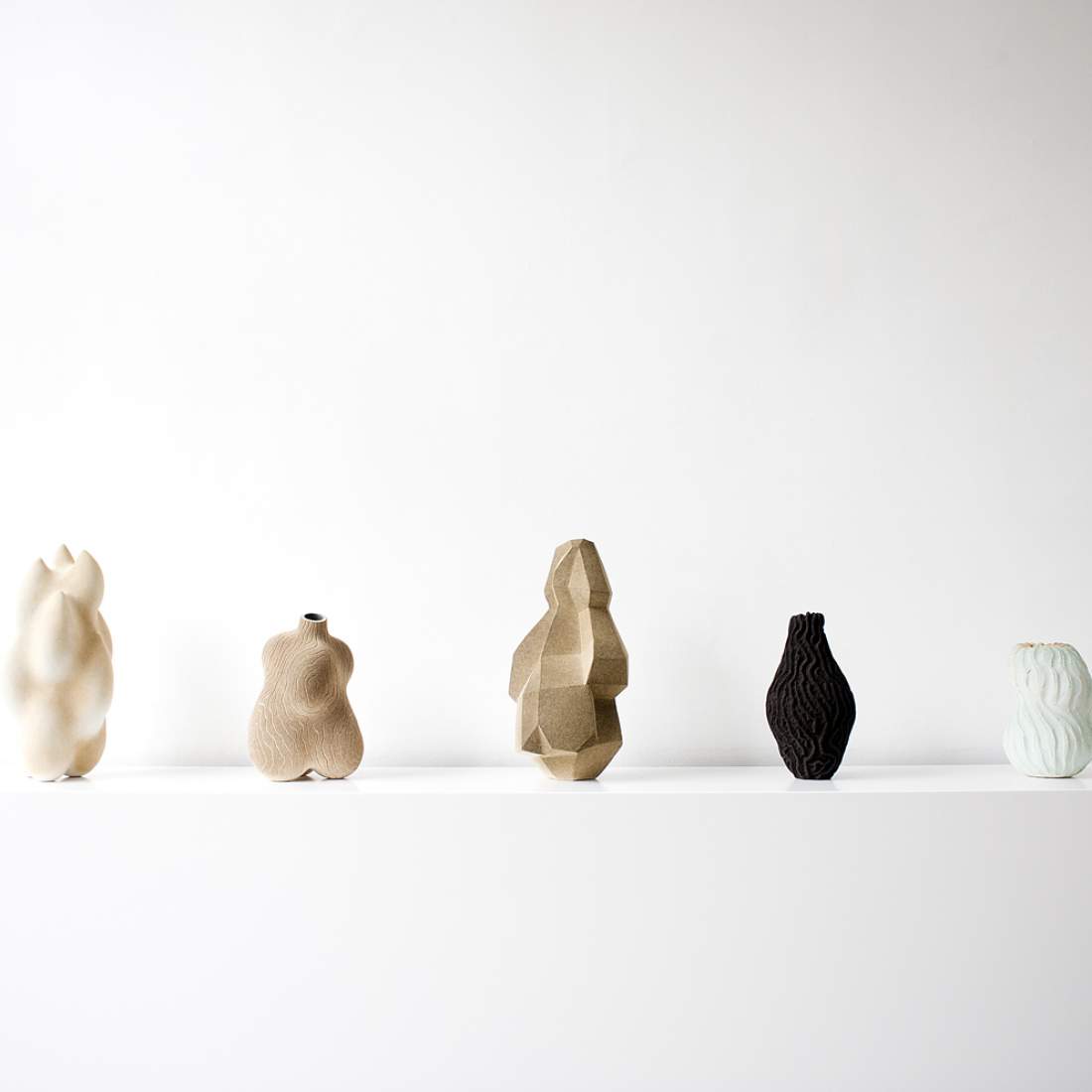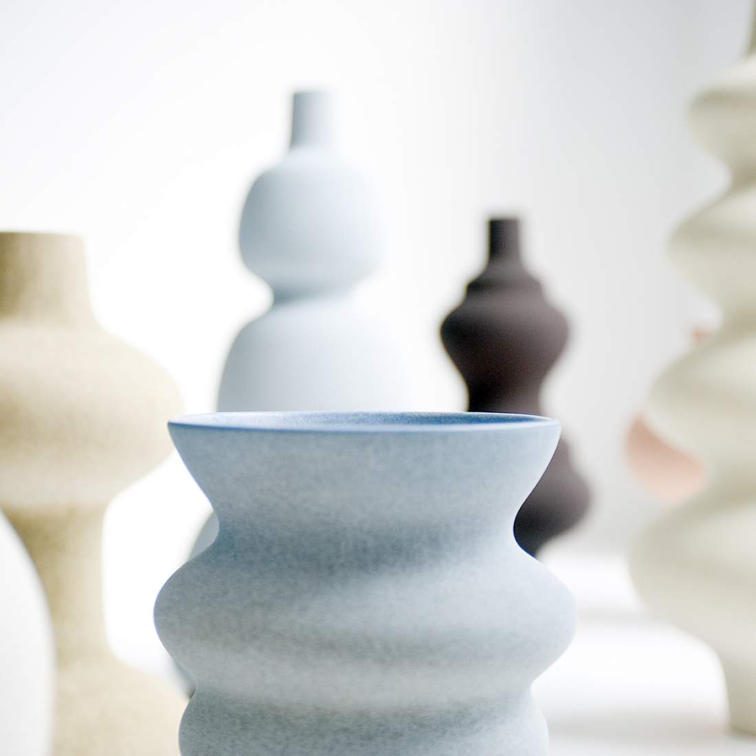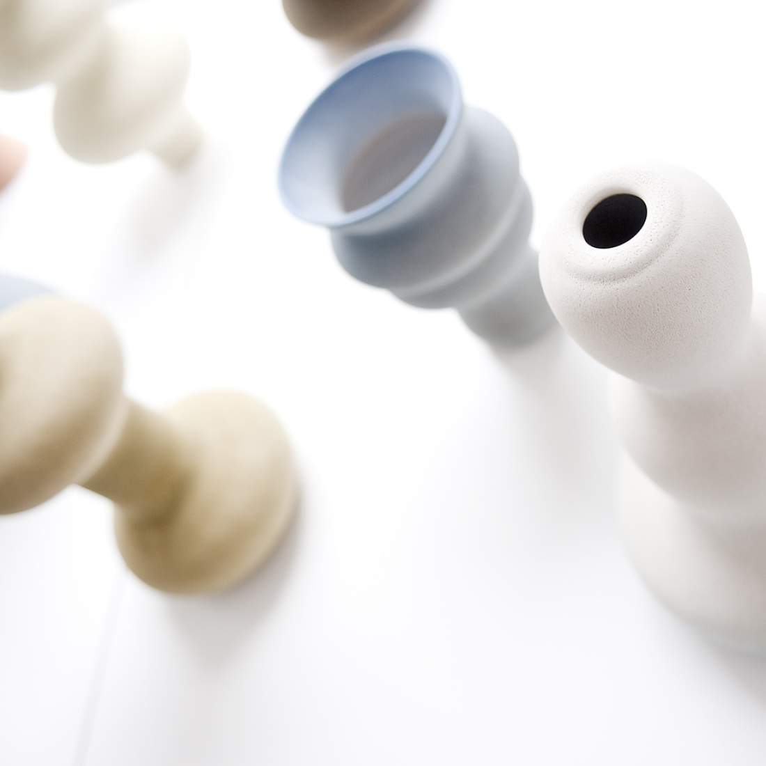 La otra línea de investigación de la artista danesa que nos ocupa es un paso más en la utilización de este “concepto contenedor” (“vessel”, como dicen en Estados Unidos), y es la liberación de las formas del torno, aunque manteniendo la esencia del hueco interior, del crecimiento vertical y de las apertura que den sentido (que no utilidad) a ese espacio interno de las esculturas. Estas piezas son más orgánicas, algunas con crecimientos y texturas vegetales, otras claramente antropomórficas e incluso geométricas, pero siempre manteniendo la esencia de la vasija, del contenedor.
