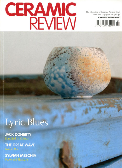 En este número de la revista británica Ceramic Review encontramos información sobre la cerámica internacional, especialmente de la realizada en reino Unido, las exposiciones, eventos, cursos, etc. También encontramos artículos sobre temas como las últimas cocciones realizadas por Jack Doherty en la Leach Pottery; Christine Guth nos habla de la influencia de la obra “Gran Ola”, de Hokusai; la técnica del Nerikomi, la cerámica realizada con moldes mediante la técnica “agata”, o un acercamiento a la forma de trabajar de Jack Doherty.