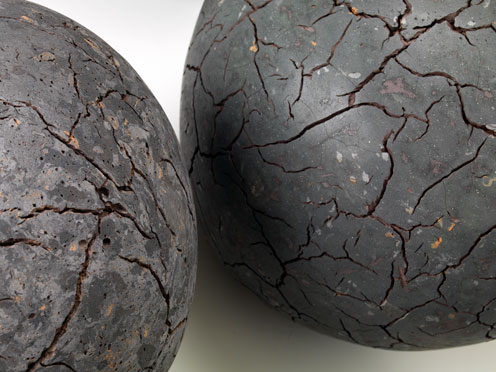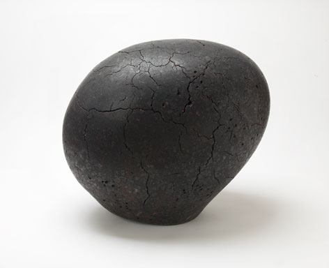 Las esculturas de esta serie tienen tal rotundidad que llenan cualquier espacio con su sola presencia, podríamos hablar de su relación con la naturaleza desde la estética: la belleza geológica…, las fuerzas telúricas… o la creación magmática… Pero sería caer en lugares comunes cuando se habla de la relación de la obra cerámica con la naturaleza. En el caso de esta exposición, es el título de la misma, “LLuna Nova”, el que nos condiciona la forma en que nos acercamos a las esculturas. “Luna nueva”, el período oscuro en que la Luna es invisible desde la Tierra,  a partir del cual la luz vuelve a ser visible, como un símbolo del renacimiento.