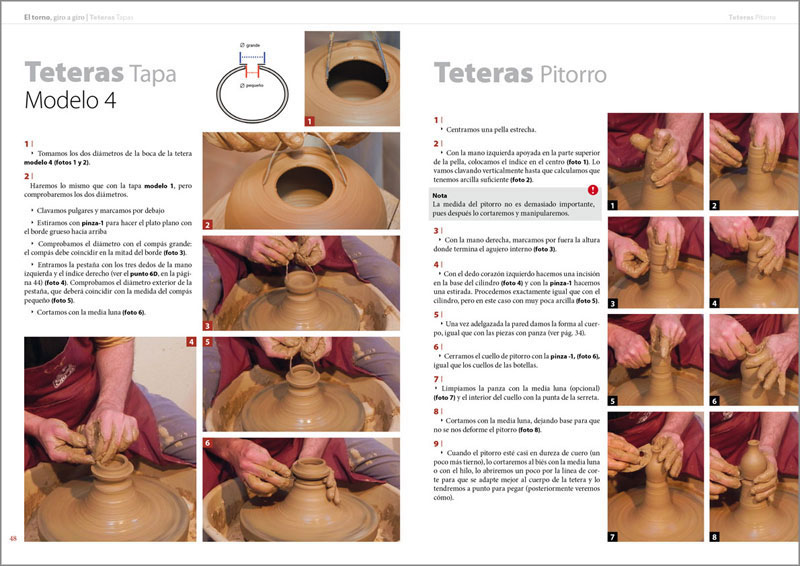 Obviamente, cualquiera que haya probado a trabajar al torno sabe que cada uno de los capítulos del libro se traduce en muchas horas de trabajo (¡cuánto le cuesta al principiante centrar la pella!, ¡cuánta fuerza de voluntad hay que tener para conseguir que el barro vaya por donde queremos!). Quizá en eso esté lo práctico de este tipo de libros: para quien empieza, nada mejor que tener una ayuda para ver los defectos que se han cometido y unos consejos a tener en cuenta durante la próxima sesión de trabajo al torno.