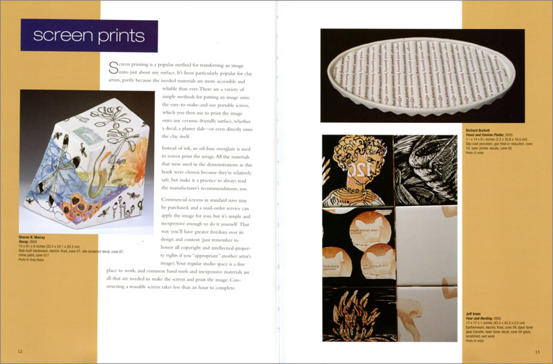 Paul Andrew Wandless ofrece una introducción a estos temas mediante el desarrollo “paso a paso”, con cientos de fotografías de los procesos, listas de materiales necesarios, trucos y gráficos. Como suele ser habitual en estos libros, es muy importante la inclusión de fotografías de la obra en cerámica de decenas de artistas, en este caso principalmente norteamericanos, que nos permite conocer las posibilidades prácticas de las técnicas que hemos aprendido.