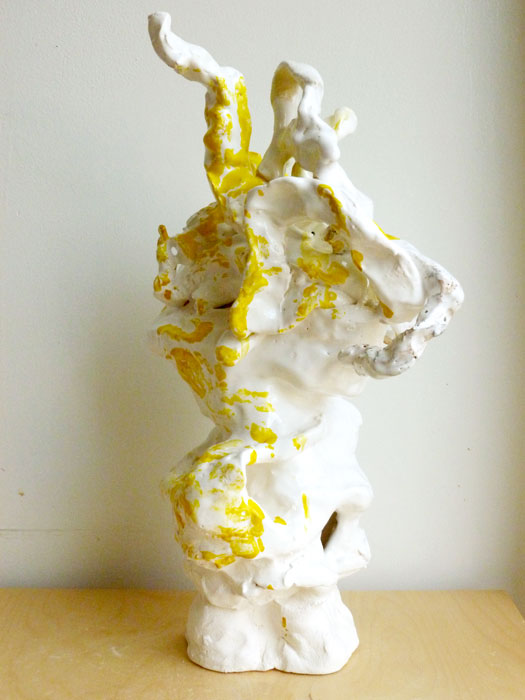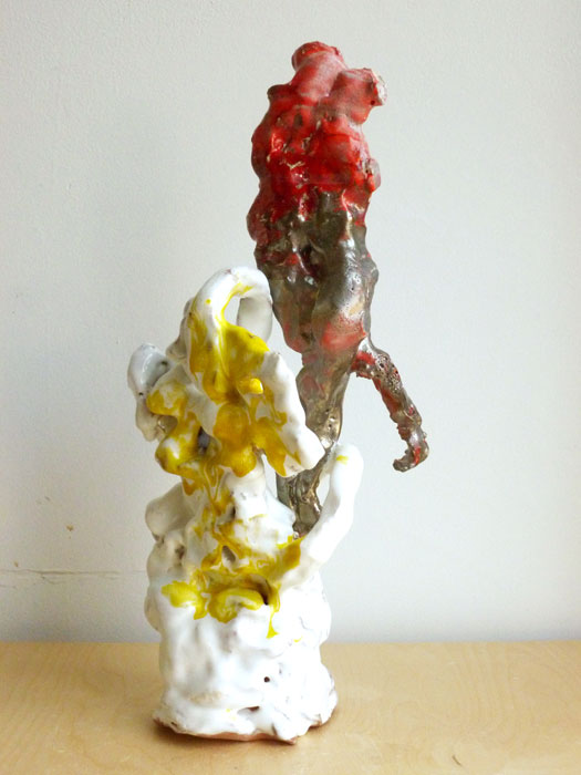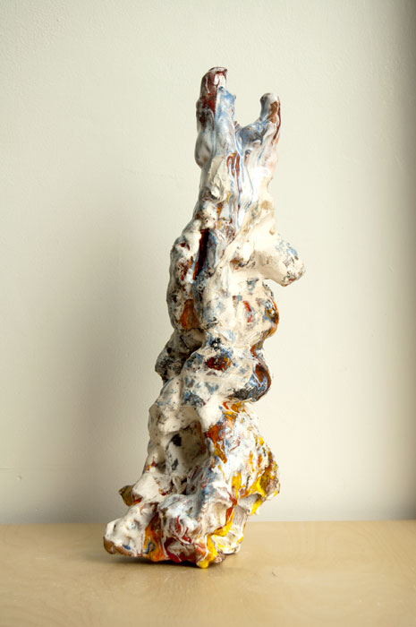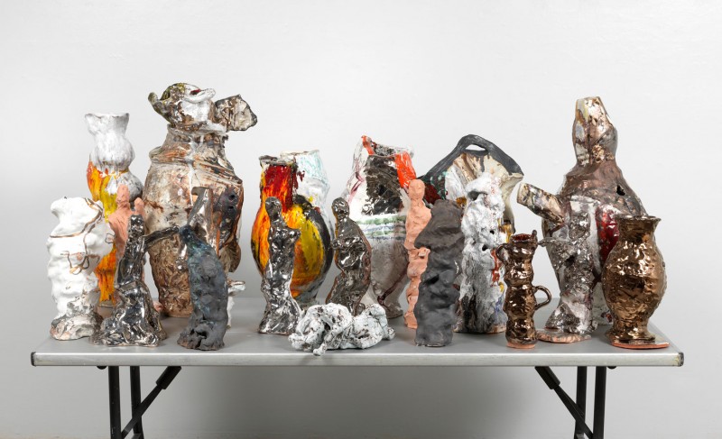 Hay constantes en el trabajo: el lugar y estar fuera de lugar, amor al arte, a la practica y al taller, tradición, color, crudo y áspero, escultural y digital, como ser preciso hoy; preguntas y complicaciones de lo estético como presencia y como ausencia, intuición y oficio. Como crear un espacio y forma donde lo conceptual, lo arcaico y lo contemporáneo comparte tiempo y lugar con lo local, lo universal y la memoria. Mezclando la inmediatez con esmero, y la atención. Amorfo y concreto, abstracto y figurativo, serio y perdido en búsquedas: los asuntos de ser humano.