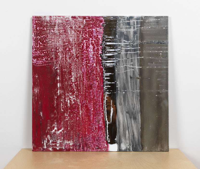 En el trabajo hay un propósito poético: el descubrimiento y redescubrimiento a medida que la obra progresa. Es un intento de coordinar lo conocido y lo que queda por conocer. La superficie, la piel, es más bien un espacio, una sorpresa sin claves. El movimiento de la mano, la acción, la repetida acción, el chorreado que va creando capas que le dan forma, color y luz.