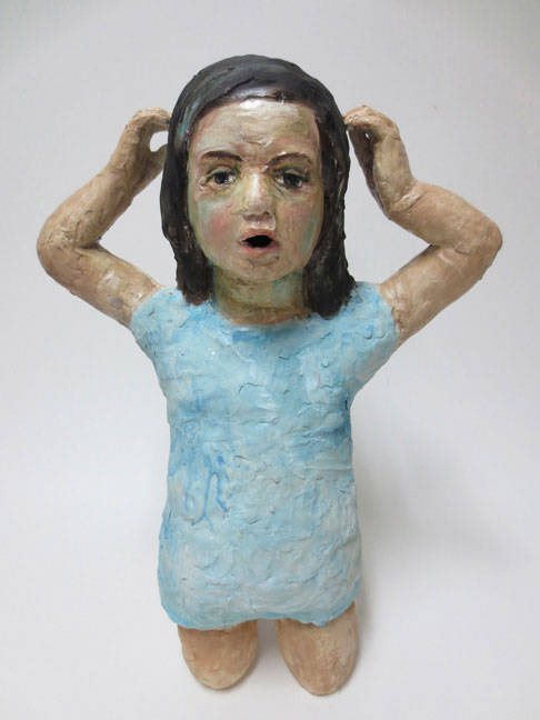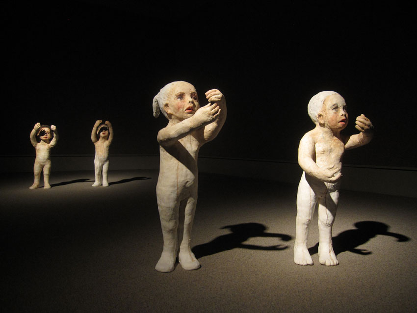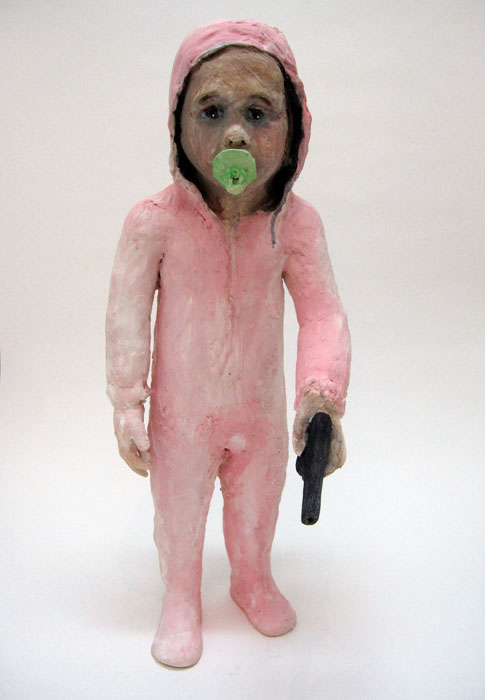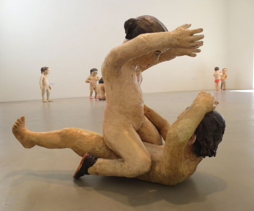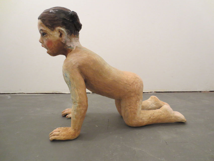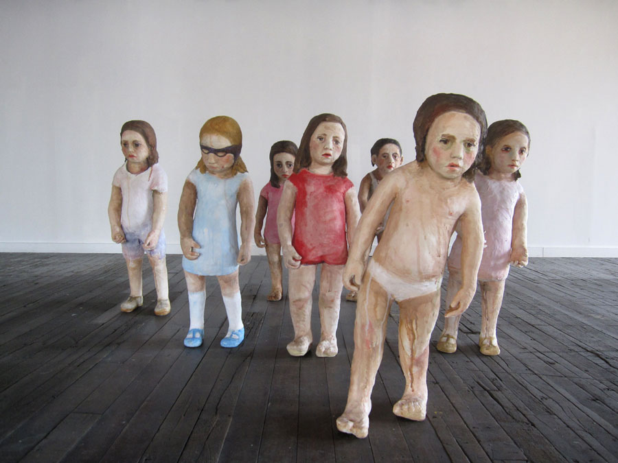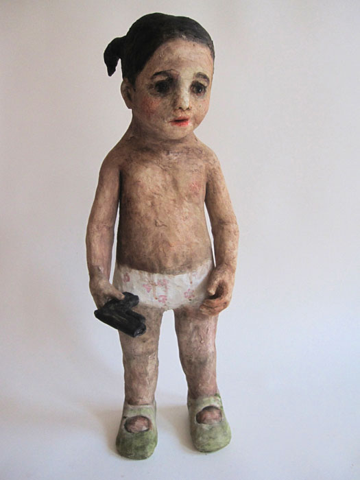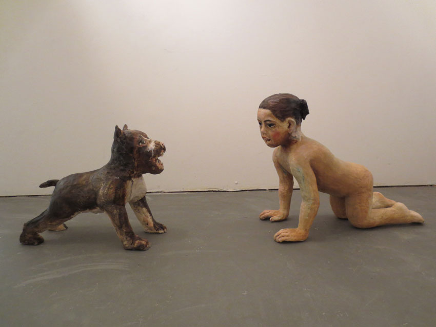 La escultura cerámica y la pintura de Claudia Álvarez tienen varias lecturas. La fuerza expresiva de la imágen de niños y niñas peleando, llevando armas, en ocasiones desnudos o en actitudes incluso violentas no puede dejar indiferente a nadie. Sin embargo, la propia artista nos avisa de que hay que tratar de ver más allá de esas impactantes imágenes.