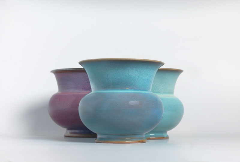 En ocasiones, a la cerámica “Jun” se la conoce como uno de los “Cinco estilos clásicos” de cerámica (wu da yao) de la dinastía Song (960-1279). El nombre de “Jun” viene del horno situado cerca de Juntai, en la la puerta norte de lo que fue la prefectura de Yuzhou, en la provincia de Henan, en la que la se produjo cerámica desde el final de del período Song del Norte (960-1127) hasta la dinastía Ming (1368-1644). La cerámica “Jun” ha sido muy admirada durante siglos, tanto por los especialistas chinos como por los occidentales, por la belleza de sus esmaltes, que van desde el clásico azul cielo, opalescente y grueso, hasta los diversos efectos moteados y veteados en tonos malva, lavanda y púrpura oscuro o verde. Hasta finales de 1970 fue difícil saber cómo se desarrollaron estos esmaltes, cuando se descubrió que el tono azul no es debido exclusivamente a los pigmentos, sino que es realmente un efecto óptico. Durante la cocción del esmalte “Jun” se crean pequeñas burbujas que dispersan la luz, lo que provoca que, al penetrar la luz a través del esmalte, se refleja el espectro de luz provocando el tono azulado.