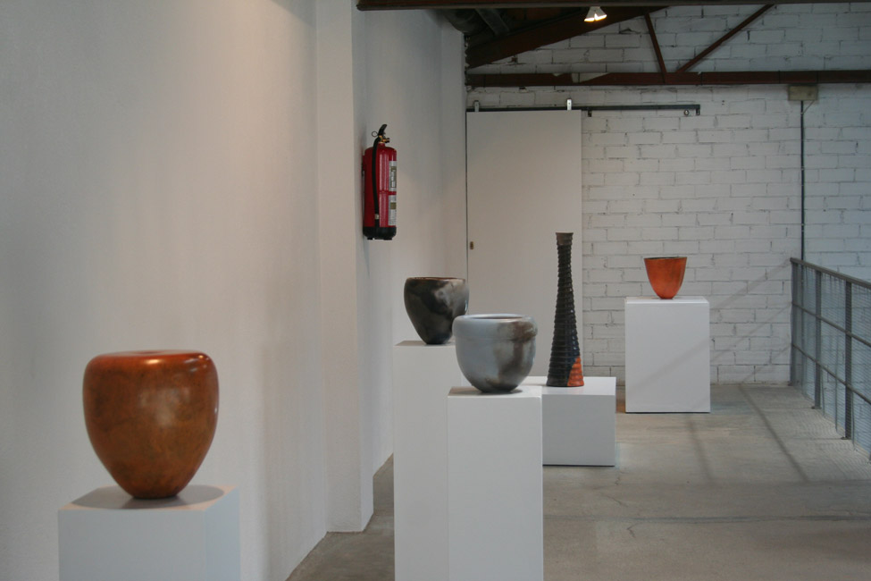 Una tarea habitual de Marcos es la de trabajar como tornero para otros ceramistas de la zona, cosa que a él le enorgullece. Es un excelente tornero, pero en sus piezas no hay ningún alarde de virtuosismo. Son rotundas, potentes, pero delicadas y sensuales a la vez. La fina piel de sus sigilatas y ahumados nos obligan a acariciarlas, a algunas casi abrazarlas. Los ahumados son suaves, discretos. En algunas piezas sólo se intuye, apartándose mucho del ya demasiado visto y usado “Pitfiring”.