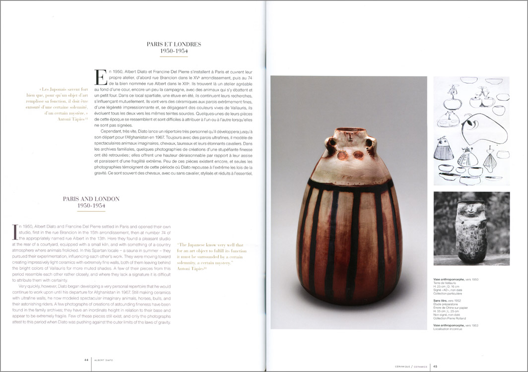 Este espléndido libro permite conocer la trayectoria de Albert Diato, cuya labor artística se desarrolló principalmente entre la cerámica y la pintura. Nacido en 1927, este artista formó parte de la generación que en el París de la post-guerra trabajaron para devolver a la capital francesa su carácter de centro de la vanguardia internacional.