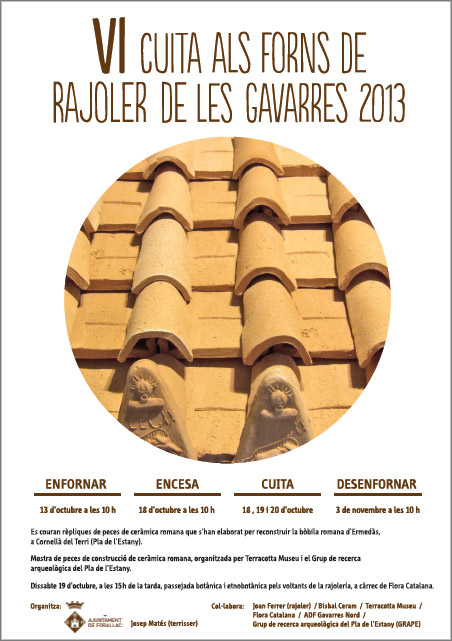Esta actividad se realiza desde hace años con la intención de dar a conocer el patrimonio industrial de la zona, en este caso los hornos de “rajoles” de la zona de Les Gavarres. Se ha recuperado un antiguo horno que ahora se vuelve a utilizar para su uso. Este año se han realizado réplicas de piezas de cerámica romana, que se utilizarán posteriormente para la reconstrucción de la “bòbila” romana de Ermendàs, en Cornellà del Terri (Pla d’Estany-Girona). Esta “bòbila” consiste en una antigua alfarería romana.