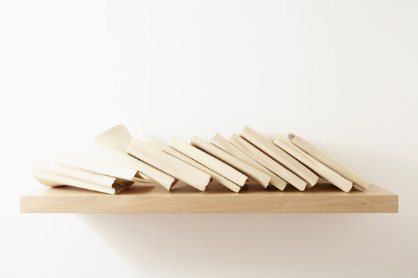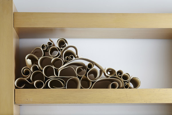 Clasificar y contener, conservar y reunir, son acciones que constituyen una realidad. Este ejercicio se produce y se manifiesta a través del tiempo. Lo que queda es su historial, su huella, de la que surgen las características concretas, tangibles y físicas. Las piezas de arcilla cruda, cuencos guardados en cajones, montones de papeles, hojas, folletos y contenedores, dispuestos en las estanterías componen una colección, como fragmentos de una biblioteca.