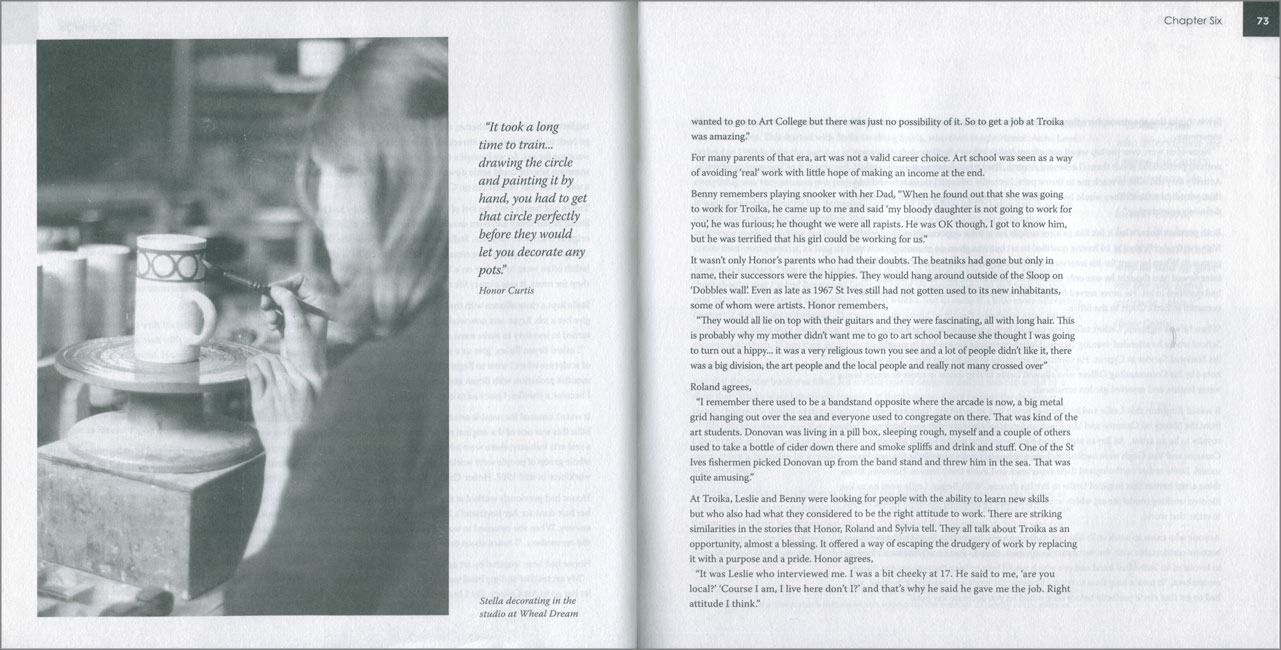 Este libro ha rescatado las opiniones de los artistas y artesanos que trabajaron en Troika, así como de sus fundadores, aportando de esta forma no solo la más completa historia de este taller, sino también un reflejo de la forma en que se desarrolló el ambiente artístico en St. Ives durante dos décadas.
