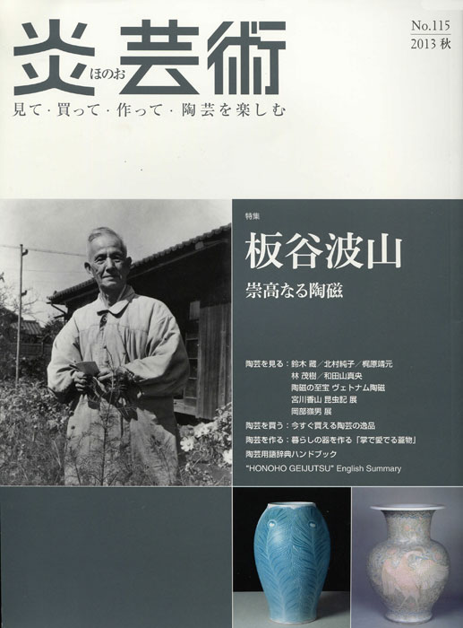 En esta ocasión la atención principal de esta revista se centra en la figura de Iyata Hazan (1872-1963), un ceramista poco conocido pero que es una figura popular en el mundo de la cerámica japonesa. Hazan dedicó gran parte de su carrera a un estilo poco habitual en Japón, como es la cerámica Art Nouveau, que unía esta estética, predominantemente europea, con la tradición japonesa; también trabajó otros estilos de cerámica oriental, en los que, no obstante, imprimió su sello personal. En sus últimos años volvió a sus orígenes, interesándose por la cerámica para la ceremonia del té, desarrollando unos impresionantes, sobrios y sutiles esmaltes tenmokú (inigualables sus “polvos de té” o sus “gotas de aceite”), celadón o rojos de cobre, entre otros muchos. Su popularidad fuera del campo de la cerámica llegó en 2004, cuando se estrenó una película (un biopic, no un documental) sobre su vida, dirigida por Sho Igarashi.
