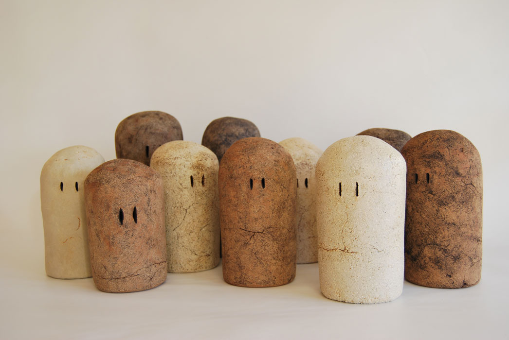 Proyectadas desde unos comienzos con estructuras de metal, madera o cemento, sus esculturas se consolidan en torno al barro, convirtiéndose en el material más importante en su trayectoria artística. Todos los ingredientes creativos aportan información desde la esencia de las obras, y la razón del barro nace de su textura, su color y su calidez. Símbolo del origen de la materia, Neruda escribió que el hombre fue “párpado del barro trémulo” (1) y su presencia nos pone en contacto con nuestra identidad en la tierra. De esta forma, la artista compone la obra, tejida de procedimientos, técnicas y materiales, pero expresada, desde el principio, en forma de mensaje. Porque para Cristina Guzmán la belleza, en gran parte, reside en la fuerza de la comunicación, cuyo germen comienza desde el mensaje.