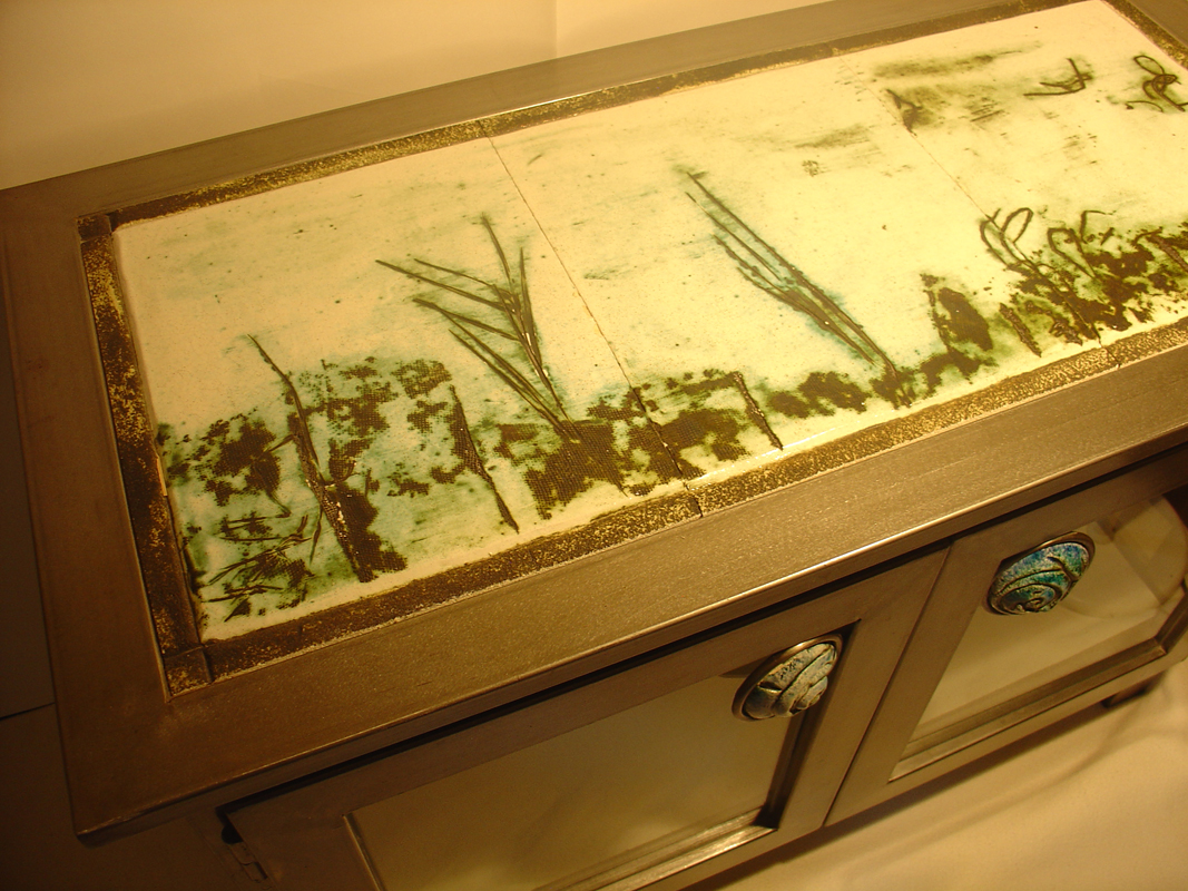 Joseba Lorza consiguió con sus muebles estructurados en metal y elementos cerámicos sabiamente incorporados una difícil conjunción. Sus puertas, rejas, armarios y estanterías conservarán su sello de fuerza y delicadeza.