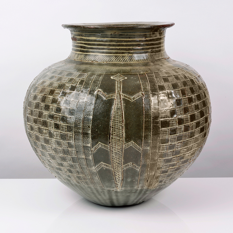 Entre estas piezas se encontraba esta magnífica obra de la ceramista nigeriana Ladi Kwali (c.1925-1984). Aunque en ocasiones discutible, es un claro ejemplo de la belleza que se consigue al juntar lo mejor de la cerámica tradicional con desarrollos técnicos ajenos, en este caso el uso de alta temperatura.