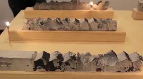 Fernando Fonticoba ofrece una visión del paisaje centrado en la huella del ser humano: casas, fábricas o restos de urbanismo desde una visión aérea que establece una distancia con los elementos mostrados. La obra escultórica de Fonticoba va desde los pequeños murales “topográficos” a la instalación de elementos escultóricos que conforman una suerte de “maqueta” paisajística y metafórica, con elementos que buscan aportar claves, como la inclusión de un avión junto a las casas o luces.