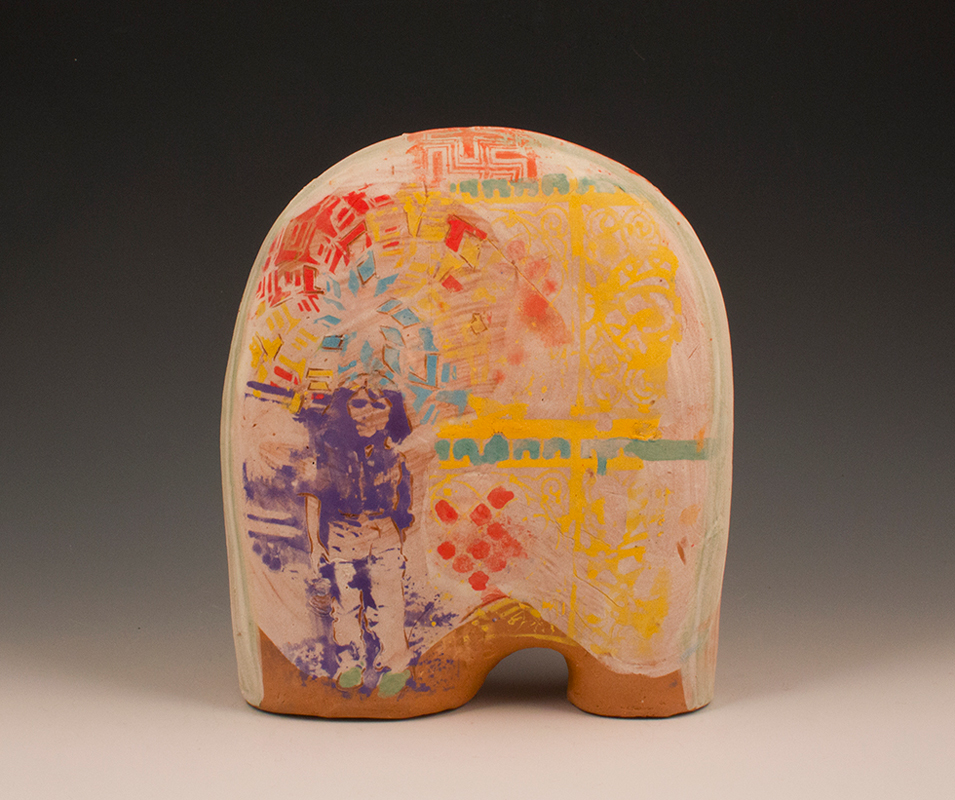 En mi trabajo, mis antecedentes en dibujo y pintura son una parte integral. Mi enfoque ha sido la escultura y su relación con la riqueza cromática de la pintura, siempre con la idea de empujar tanto material como concepto a nuevos niveles tratando de consolidar mi interés por la imagen y la forma; sin dejar de buscar una voz personal y unificada. Técnicamente sigo experimentando y buscando, pruebo siempre cosas nuevas partiendo de la idea de que hay mucho que aún no sé y hay mucho por aprender. Últimamente me he concentrado en la construcción a mano y la impresión directa con fotocopias y pigmentos cerámicos.