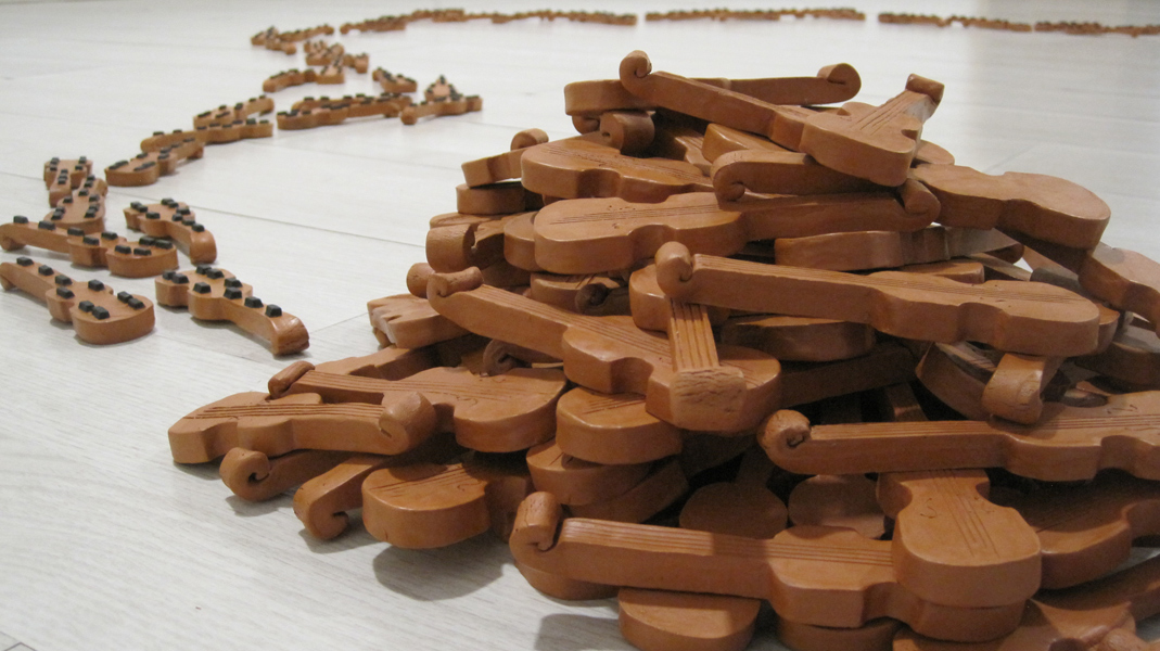 Los dos grupos de ceramistas representados en esta muestra son el colectivo de Ceramistas Contemporáneos Vascos EKG Euskal Keramikagile Garaikideak, y el colectivo Kuatro+2. Esta muestra, que reúne 14 propuestas escultóricas se ha bautizado con el título de “Ceramic Suite” porque es “una forma sofisticada de mezclar distintas tonalidades, contrastando materiales temáticos-cerámicos presentándolos al inicio de la exposición y reexponiéndolos a su final”, en las palabras de Inés González de Zarate para la presentación de la exposición.