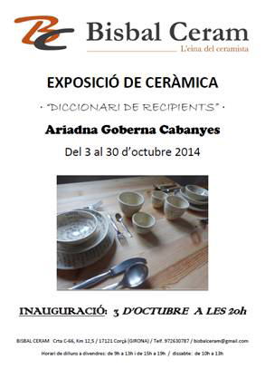 Del 3 al 30 de octubre se puede visitar la exposición de cerámica funcional realizada por Ariadna Goberna Cabanyes, que, con el título de “Diccionari de Recipients”, está programada en la sala de exposiciones de Bisbalceram, en la localidad de Corçà (Girona).