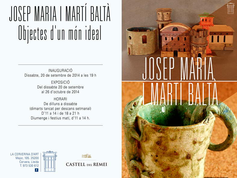 Desde el 20 de septiembre hasta el 26 de octubre se puede visitar la exposición de cerámica “Objectes d’un món ideal”, de José María y Martí Baltà en la galería La Cerverina d’Art, en la localidad de Cervera (Lleida).