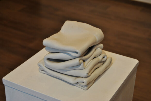 Digamos que es algo que me mueve, seguramente lo que me inspira son las cosas que me rodean cada día, yo creo que viene del hecho de que siempre estoy pensando que algún día pasaré a otros materiales, porque, como los escultores del renacimiento, estoy empezando con la cerámica, que era un material que manejaban primero para luego pasar a otros. Llevo veinte años con la cerámica, pero siempre tengo esa idea. Por ejemplo, el tema de las gomas nació primero con la idea de trabajar directamente con gomas, de hecho fui a buscar cámaras de aire a tiendas de ciclismo pero después, no se cómo, me salió hacerlo en cerámica, porque al final para mi la cerámica tiene una preciosidad que es más afín a mi poética.