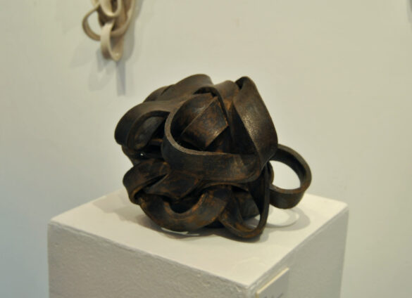 (para esta exposición) no me he traido dos piezas de las que había pensado porque he ido montando y he visto que era más que suficiente, normalmente descarto mucho en la fase de “modelación”. Para esta exposición me he puesto un método de trabajo que era hacer una escultura al día, en italiano se dice “una scultura al giorno, toglie il medico di torno”, “una escultura al día y alejarás al médico”.