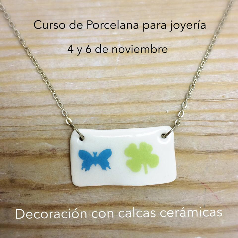 Del 4 al 6 de noviembre se impartirá en el Taller de María Torné un curso dedicado a la joyería en porcelana y, más exactamente, a la utilización de calcas cerámicas en la decoración de piezas de joyería.