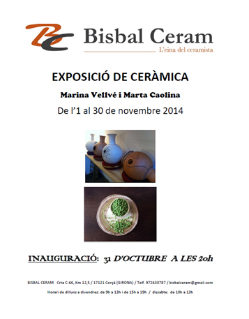 El próximo día 31 de octubre, a las 20 horas se inaugurará en la sala de exposiciones de BisbalCeram (Corçà, Girona), la muestra de cerámica de Marina Vellvé y Marta Caolina