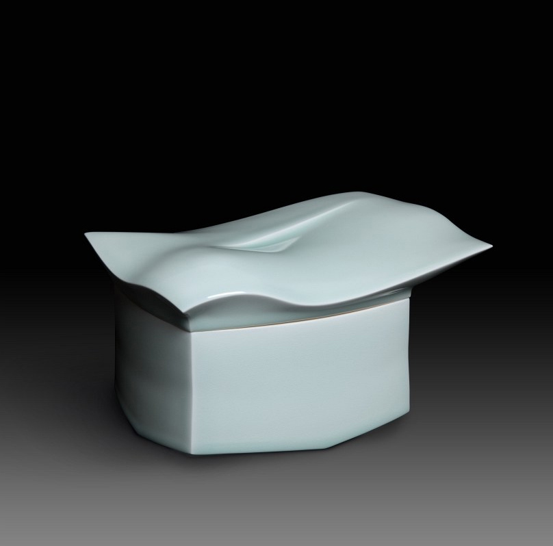 Hako no katachi “Kaikei”, 2013. Porcelana y esmalte celadón, 11 x 15,7 x 21,5 cm.