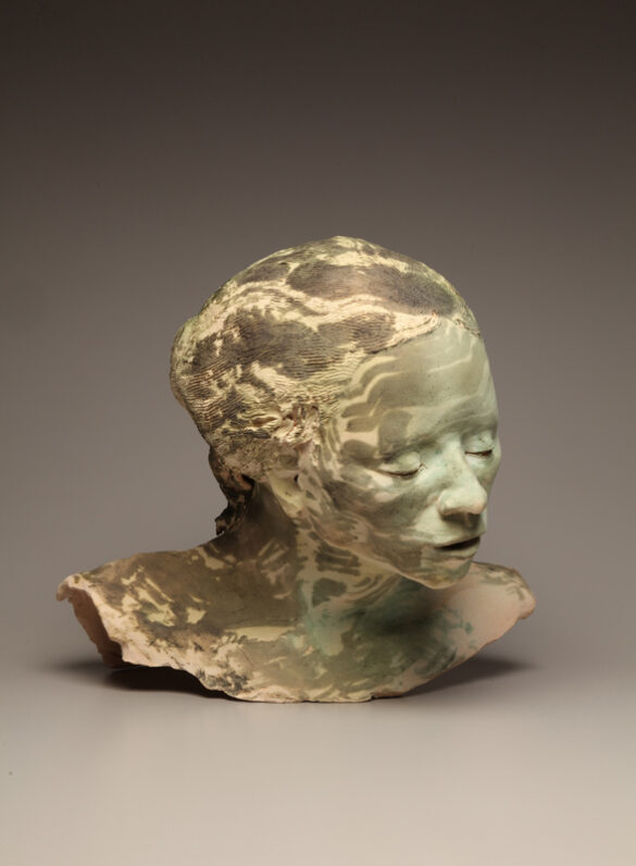 En una búsqueda constante de los seres humanos, con su filosofía, las emociones, la respiración, el escultor disecciona carne y huesos sin concesiones, órganos y esqueleto, torsos y cabezas, hombres y bestias, entregando a nuestros ojos como un espejo de nuestras entrañas. Sus coloridos estómagos de ovejas, sus cráneos cubiertos con un celadón cremoso o sus cabezas gemelas impresionan por su estética fundamental, que no dejan de despertar nuestra angustia. Trabaja la tierra con las marcas del humo, piedra arenisca, porcelana o vidrio coloreado, Borgeaud se involucra en un cuerpo a cuerpo con el material exigente, empujándolo a trascender sus limitaciones.