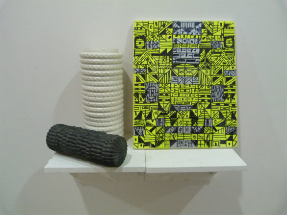 S/T muestra la investigación de Pablo Barreiro con la composición de objetos/forma en una relectura de elementos decorativos. Reutilizar la Copia, evidenciar la Copia.