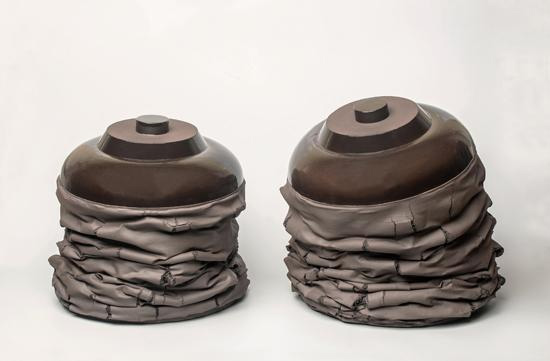 Así, el trabajo de Peño parte de una concepción formal geométrica que contrasta con la aparición de lo orgánico en forma de abatimiento o expansión de la arcilla fundida.