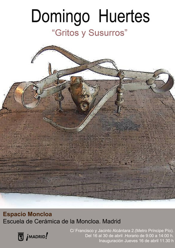 La Escuela de Cerámica de la Moncloa presenta, del 16 al 30 de abril de 2015, en su sala de exposiciones “Espacio Moncloa”, la muestra de cerámica titulada “Gritos y susurros”, del ceramista Domingo Huertes.