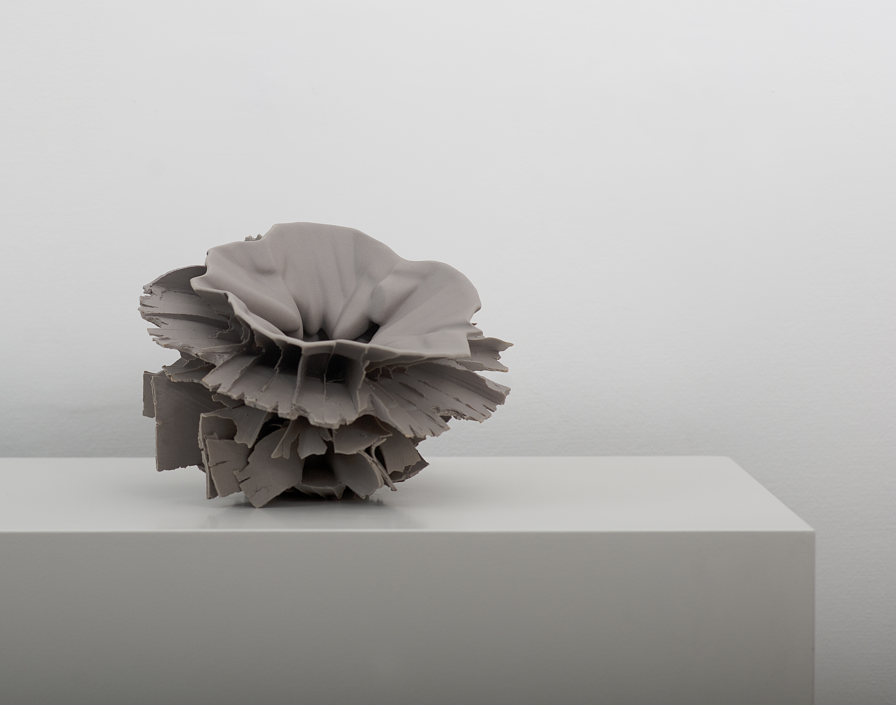 Es fácil pensar en sus piezas blancas como una suerte de esqueletos paleontológicos, restos de plantas y animales que, aunque nunca existieron, parecen estar ligados a nuestra Tierra por algún tipo de rápido proceso evolutivo. ¿Darwin se está volviendo loco o es que los conocimientos sobre el funcionamiento de la evolución, y por tanto de la vida en la Tierra, puede cambiar? En cierto modo, Simon crea formas naturales que nunca han existido, pero que nos obligan a pensar en todas las formas de vida y cómo se mueven a través del tiempo y el espacio.