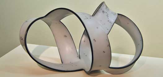 Porque este es sin duda uno de los logros que a los ceramistas más nos puede emocionar de la obra de Molet: su capacidad para crear abstracción de algo para nosotros tan concreto y lleno de significados como es el torno, el tratamiento de la superficie y el “coloreado” mediante la cocción. Las formas torneadas pierden su eje vertical y enloquecen en su nueva forma de crecer, de envolver el aire, se llenan de luces y claroscuros, proyectan sombras que llevan la escultura más allá de su propia materialidad.