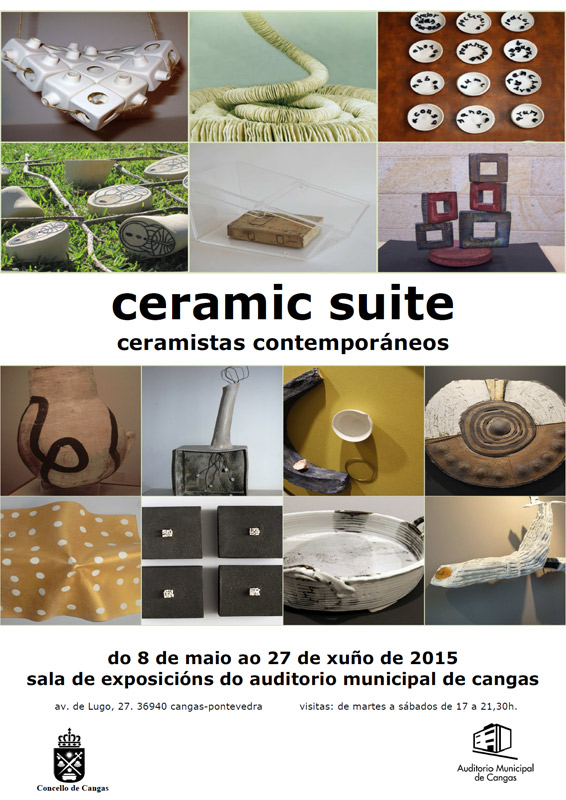 Del 8 de mayo al 27 de junio se presenta en la Sala de Exposiciones del Auditorio Municipal de Cangas (Pontevedra) la exposición colectiva de cerámica titulada “Ceramic Suite. Cerámica contemporánea”.