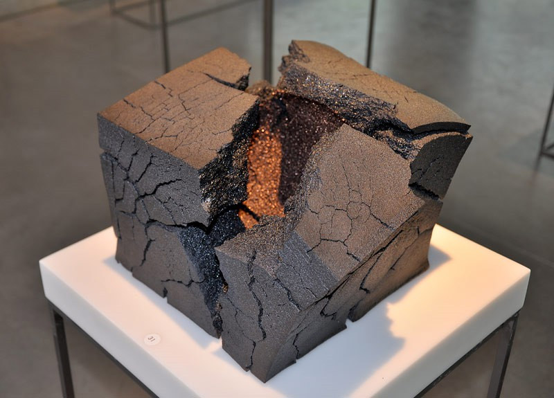 Por su parte, Joan Serra ocupa la sala destinada a artistas invitados con su exposición “Evolutions Thermiques de la Terre”, en la que los visitantes encuentran la investigación de Serra con el uso de las propiedades físicas de las pastas cerámicas: “Mi trabajo no es una abstracción de la realidad, son realidades”. Joan Serra busca en el comportamiento de las pastas cerámicas una forma de atrapar un momento crítico, en el que se aprecie el tránsito entre la pieza original y la obra final, congelando elmomento en el que esa transformación se está realizando.
