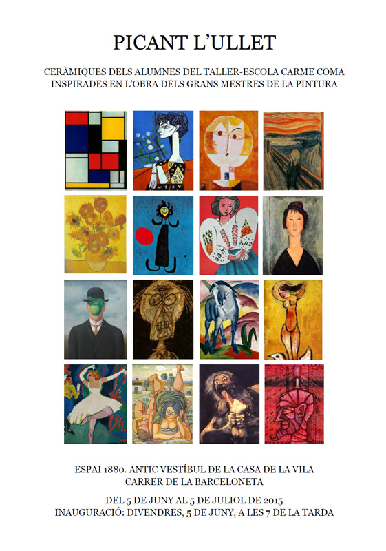 El viernes 5 de junio a las 7 de la tarde se inaugura en el Espai 1880, de Gelida (Barcelona), la exposición “Picant l’Ullet”, que presenta obras en cerámica de los alumnos del Taller-Escola de Carme Coma.