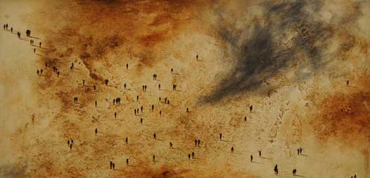 Desde hace años Iñigo Dueñas se ha dedicado a los murales en cerámica, aunque más bien habría que hablar de pintura en cerámica, ya que la mayoría de sus obras están compuestas de una sola plaza cerámica en la que desarrolla su expresión pictórica, que es netamente cerámica por el protagonismo de las tierras y los efectos del fuego..