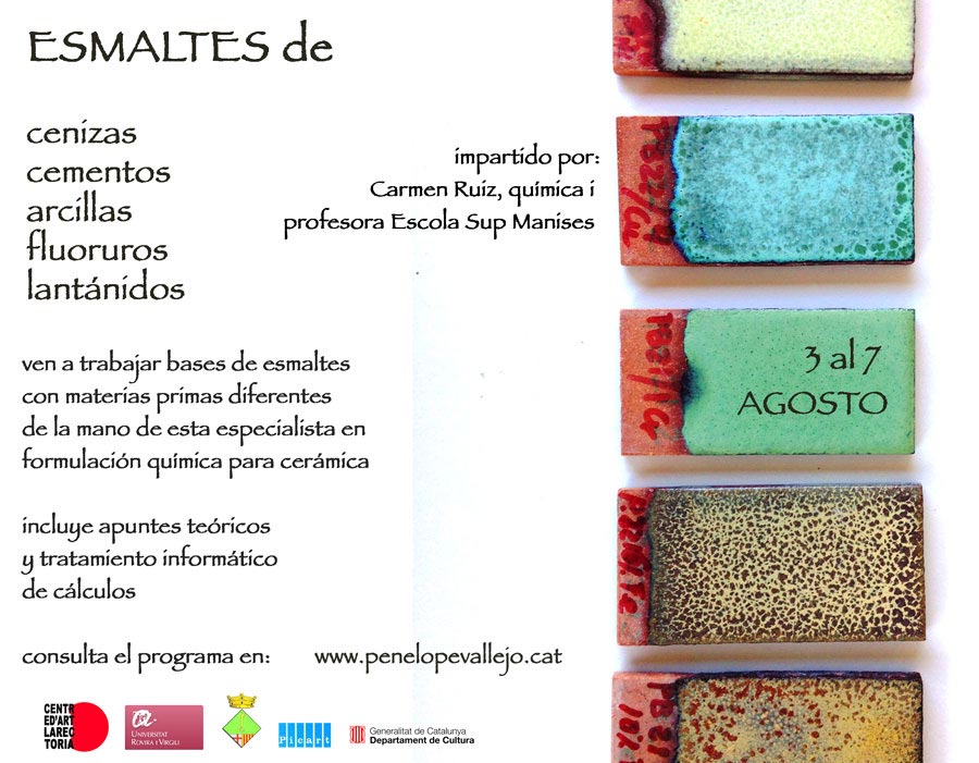 Los días 3 al 7 de agosto, la ceramista y química Carmen Ruiz Navarro impartirá un curso dedicado a los esmaltes de alta temperatura en el Centro de Arte La Rectoria de St Pere de Vilamajor (Barcelona) .