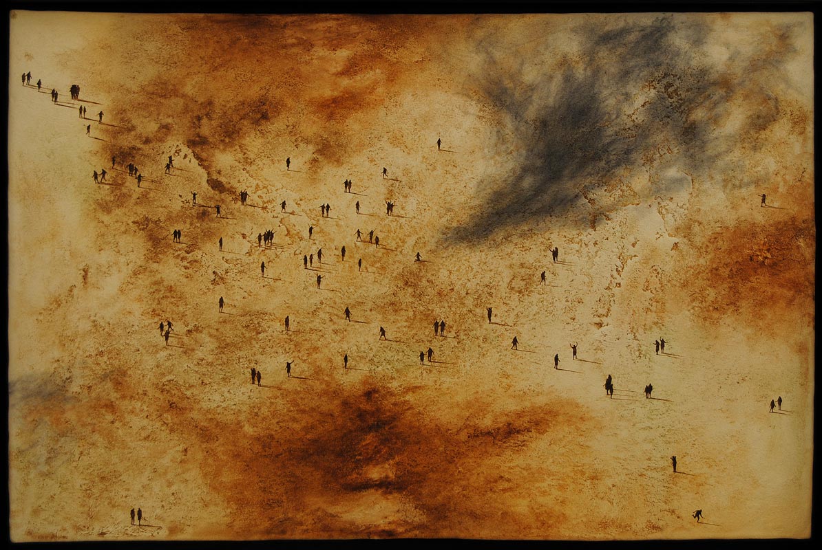 Desde hace años Iñigo Dueñas se ha dedicado a los murales en cerámica, aunque más bien habría que hablar de pintura en cerámica, ya que la mayoría de sus obras están compuestas de una sola plaza cerámica en la que desarrolla su expresión pictórica, que es netamente cerámica por el protagonismo de las tierras y los efectos del fuego..