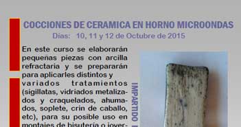 Durante el curso se conocerá la forma en que se realizan las cocciones de cerámica en el horno microondas, utilizando para ello diferentes técnicas cerámicas, como terras sigillatas, vidriados metalizados y craquelados, ahumados, soplete o crin de caballo, entre otras.