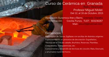 La Asociación Suramica Fusión Arte y Barro, de Granada, presenta la programación de cursos monográficos de cerámica paralosmeses de otolo e invierno de 2015, que contarán con la participación de Miguel Molet, Esperanza Romero, Javier Ramos y Esperanza Romero.