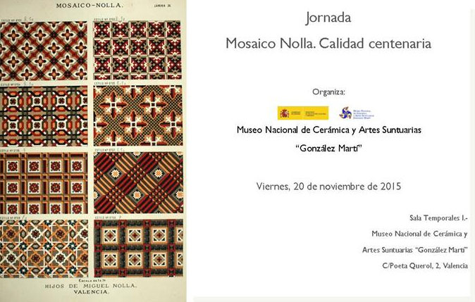 El próximo viernes, 20 de noviembre, se celebrará en el Museo Nacional de Cerámica y Artes Suntuarias “González Martí”, de Valencia, la Jornada “Mosaico Nolla. Calidad centenaria” que se centrará en el estudio de esta histórica fábrica de pavimentos.