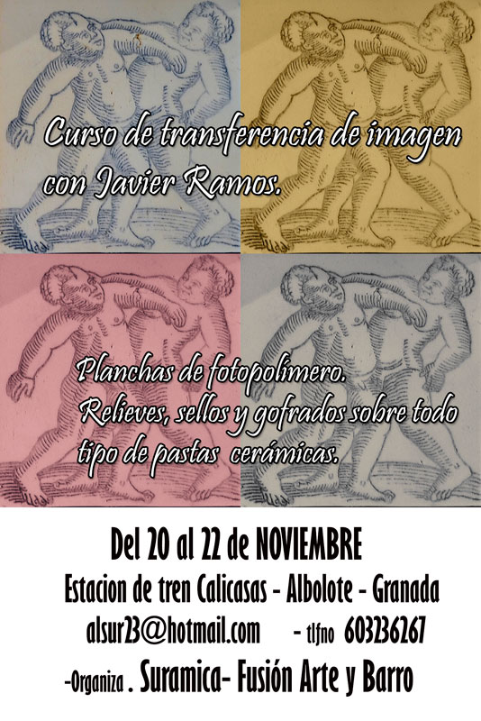 Los días 20 al 22 de noviembre Javier Ramos impartirá en Albolote (Granada) un curso dedicado a las transferencias de imagen sobre cerámica.
