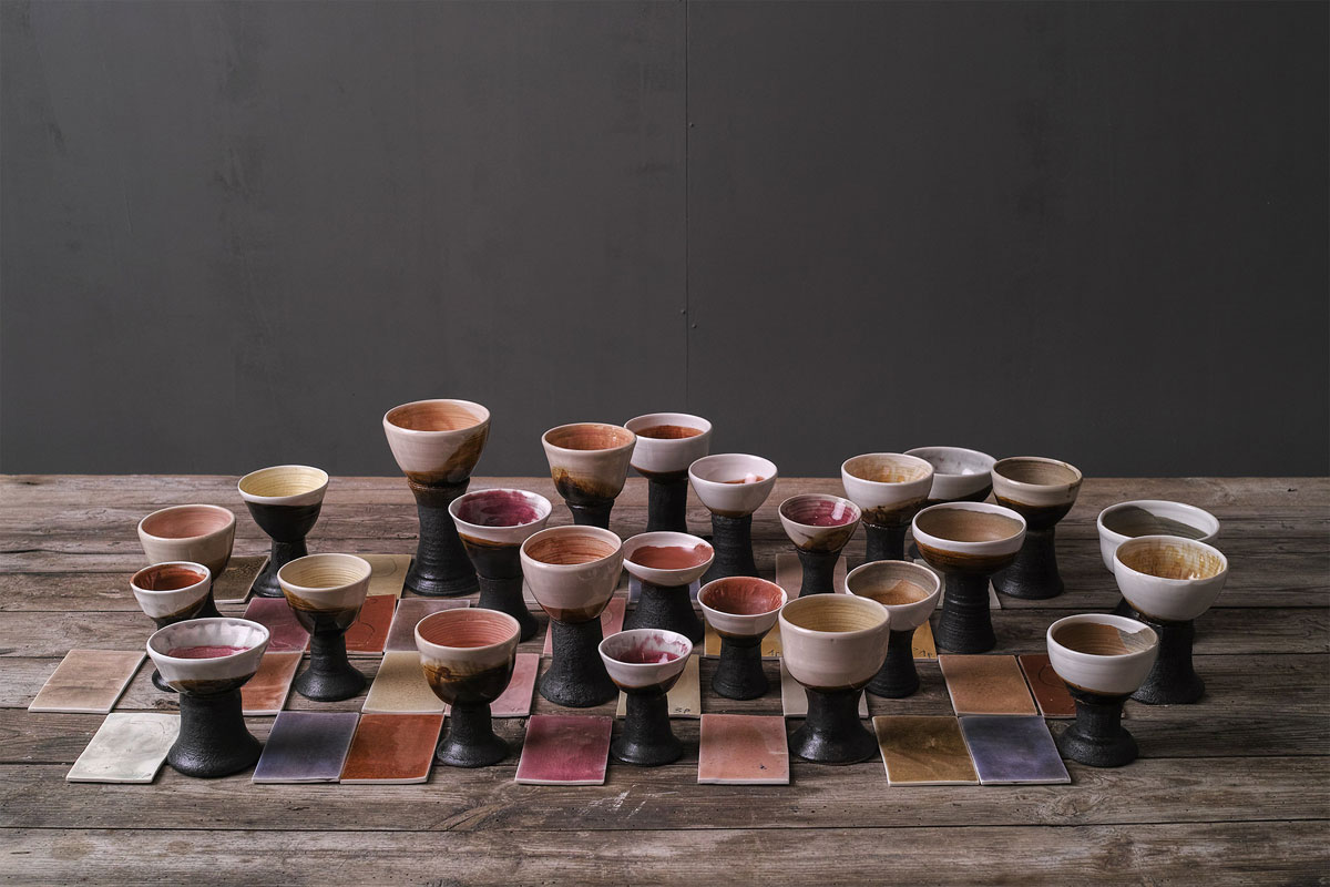 La ceramista catalana Camil.la Pérez Salvà participa en esta muestra con su obra “Variacions” realizada en porcelana, gres y refractario. Esta instalación se compone de una colección de copas torneadas con el pie de refractario y el vaso, en algunos casos de gres y en otros de porcelana. Camil.la ha realizado con esta obra un estudio de colores, colores del vino en todas sus gamas, que presenta además acompañado de una colección de muestras de colores.
